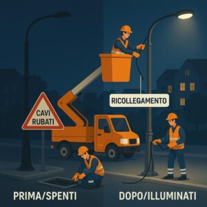 A seguito di alcuni malfunzionamenti della pubblica illuminazione si stanno attuando lavori inerenti al ripristino di quest' ultima